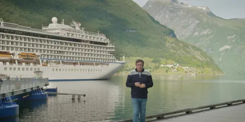 Trevor explores beautiful Bergen and visits the Dale of Norway sweater factory, the wooden Fantoft Stave Church and the home of composer Edvard Grieg. He then marvels at picturesque Geiranger and its spectacular fjord.