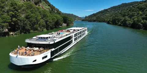 Trevor navigates the Douro’s river locks before exploring the 600‑year‑old fortress town of Castello Rodrigo. He crosses into Spain to visit UNESCO‑listed Salamanca, then continues to Favaios to visit a traditional bakery, and enjoy a cellar tour and lunch.