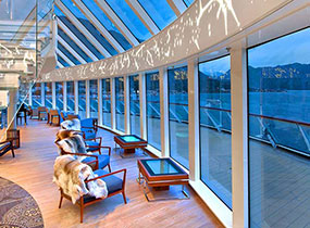 Even the smallest details take their inspiration from the exploratory spirit of the original Vikings, reflecting our deeply held Nordic traditions. Like our forebears, we’ve used light wood grains throughout the ship that show their natural beauty. Colorful textiles such as rugs and tapestries recall the patterns of early Norwegian artists and craftsmen. Subtle accents of leather handrails and touches of slate and teak exude warmth and character. In the Viking Bar, admire the clinker-built design of overlapping wood, mirroring the construction style of the original Viking longships. At The Spa, relax amid the soothing textures of natural Swedish limestone and fragrant juniper wood. In the Explorers’ Lounge, converse with friends amid cozy pelts, Turkish marble and amber and pewter details in the bar—all inspired by the far-reaching trade journeys of Vikings. You’ll find the inspiration of Vikings in every corner of every deck.