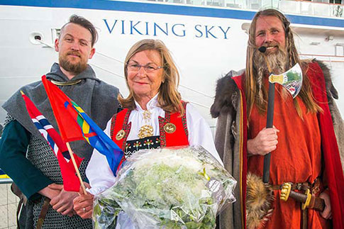 After arriving today in Tromsø, Viking Sky was positioned in the harbor adjacent to a concert stage constructed specifically for the celebration. Viking guests and residents of Tromsø were treated to a public concert, with performances from a variety of Norwegian musicians—including Arctic Philharmonic, Lisa Stokke, Violet Road, Sara Marielle Gaup Beaska and Jørn Hoel. During Viking Sky’s christening ceremony, Marit Barstad, sister of Viking Chairman Torstein Hagen, served as ceremonial godmother and offered a blessing of good fortune and safe sailing for Viking Sky—a naval tradition that dates back thousands of years.